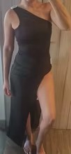 The asymmetric design creates a unique, eye-catching shape that flows effortlessly, giving you movement and style with every step. Its sleek, sleeveless cut keeps the look clean and elegant, while the flattering fit enhances your natural curves without feeling restrictive.